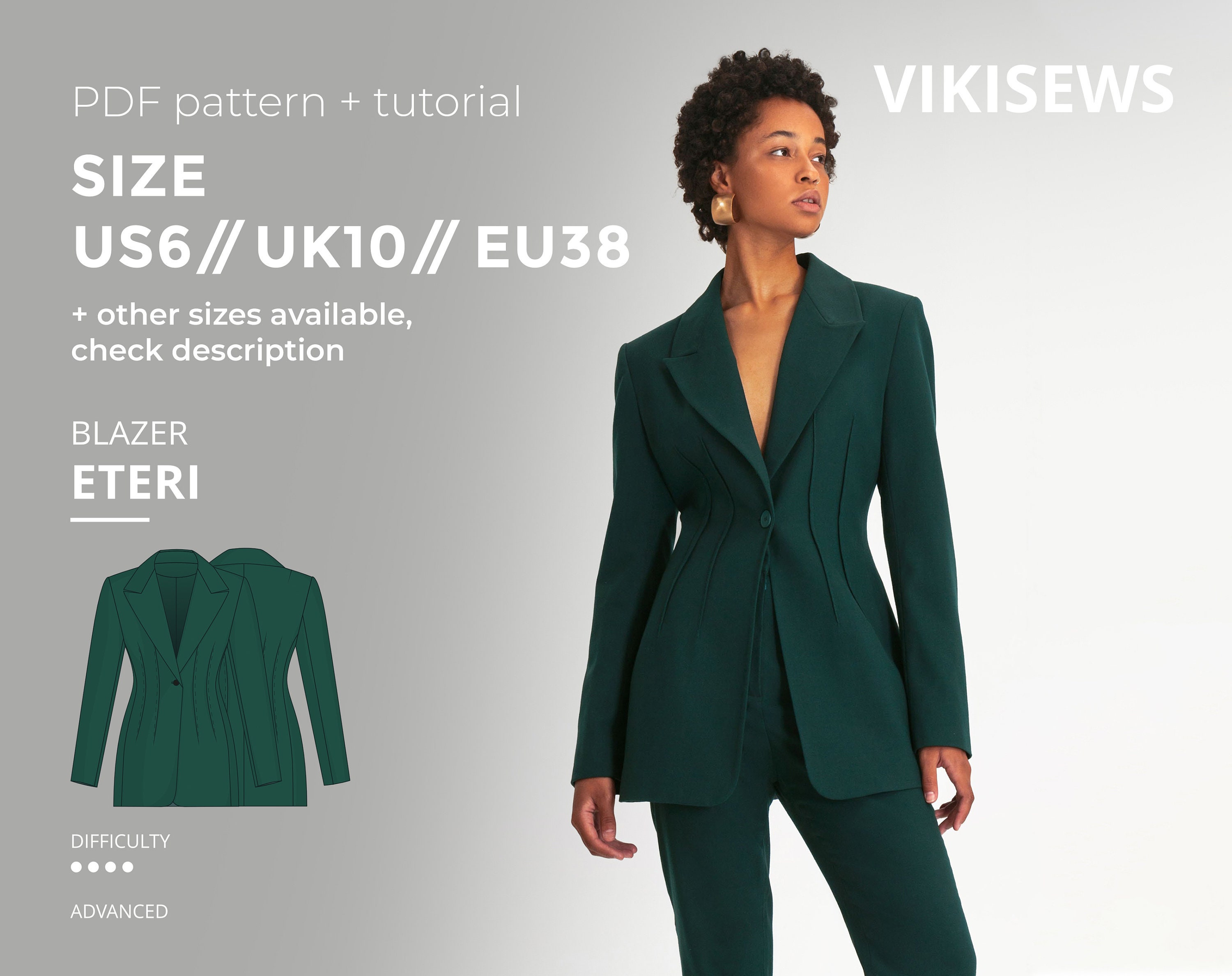 Eteri Classic Tailored Blazer Pattern With Pdf Tutorial Size Etsy